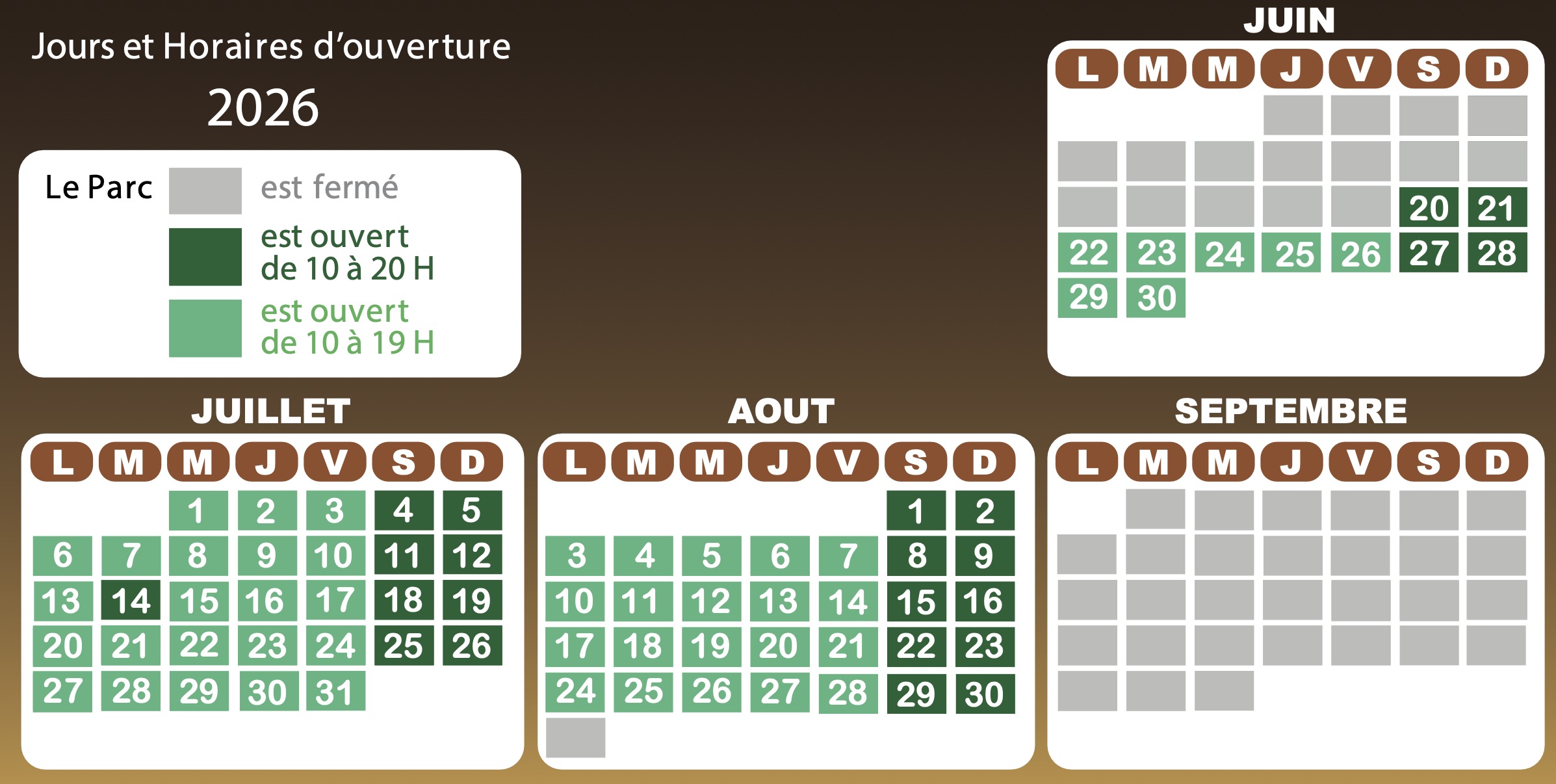 Ouvert tous les jours du 21 juin au 31 août, de 10 h à 19 h en semaine, et de 10 h à 20 h les week-end et jours fériés